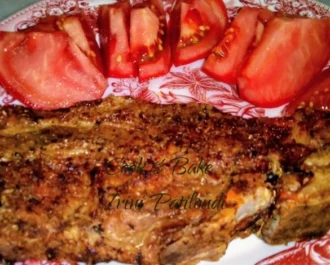 Ψήνουμε στον φούρνο σε αντιστάσεις στους 200 βαθμούς 20 λεπτά από την μία πλευρά και 20 λεπτά από την άλλη.
