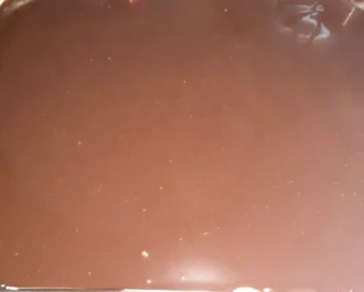Βράζω το γάλα, το ρίχνω πάνω στην ψιλοκομμένη σοκολάτα προσθέτω και το μέλι, ανακατεύω και αφήνω να γίνει χλιαρή. Περιχύνω και απλώνω με σπάτουλα τη γκανάζ πάνω από την παγωμένη κρέμα. Ξανά ψυγείο 1-2 ωρίτσες και έτοιμη η πάστα ταψιού!