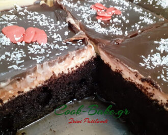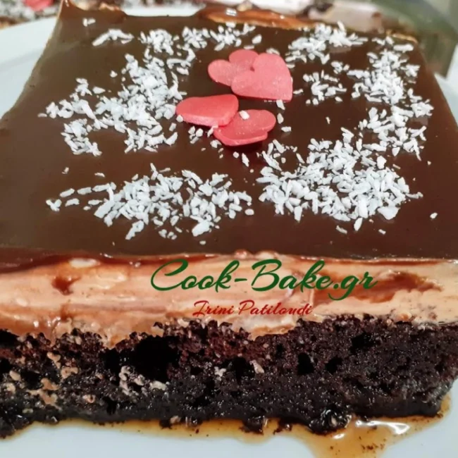Πολύ ωραίο γλυκό, σιροπιαστό με υπέροχη κρέμα και ωραία σοκολάτα γκανάζ.