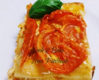 Ψήνουμε στους 200 βαθμούς αέρα για 20 με 30 λεπτά περίπου ανάλογα το πάχος της ζύμης μας.