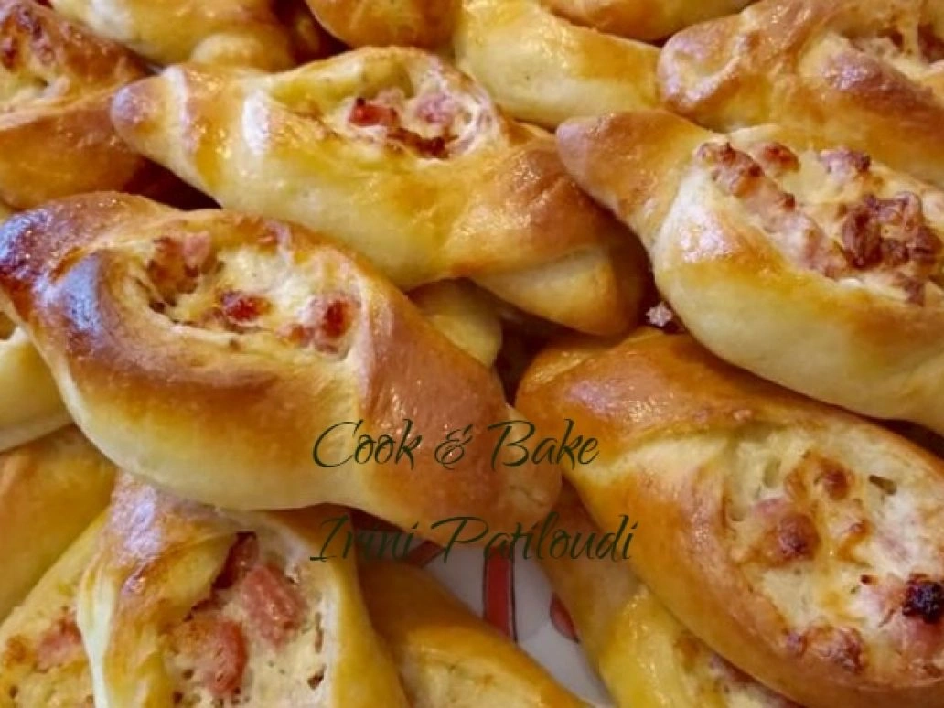 Ζυμώνουμε μέχρι η ζύμη να ξεκολλάει από τα χέρια. Αφήνουμε τη ζύμη 10 λεπτά να ξεκουραστεί και τα φτιάχνουμε αμέσως.