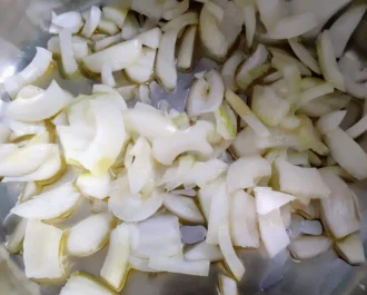 Βάζουμε τα κρεμμύδια μας να τσιγαριστούν ελαφρά.