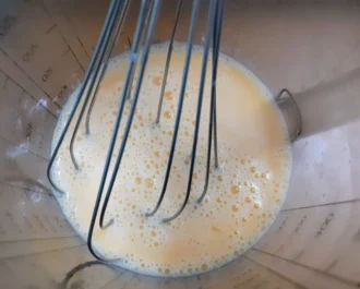 Χτυπάμε τα αυγά μας μαζί με το γάλα.να τα έχουμε έτοιμα.
