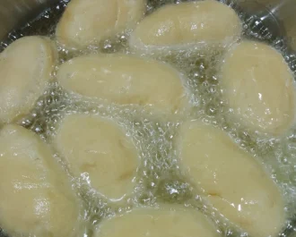 Αφήνουμε να φουσκώσουν και τα τηγανίζουμε σε μέτρια φωτιά.