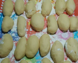 Κόβουμε κομμάτια από την ζύμη, στο μέγεθος μικρού μανταρινιού.