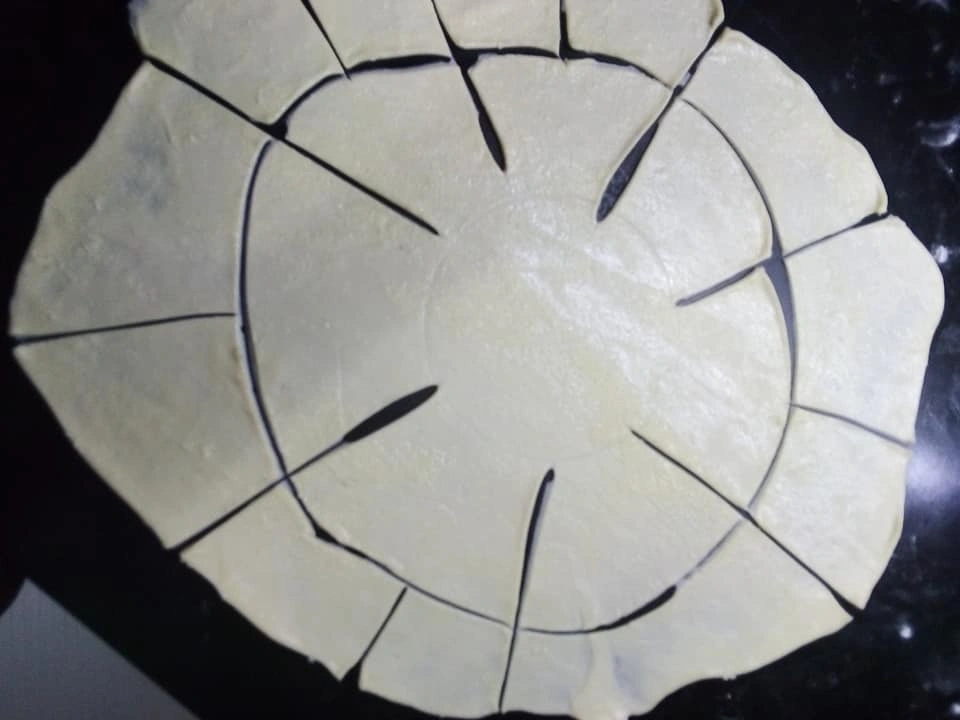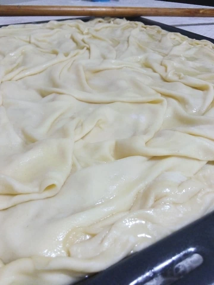 Ζυμώνουμε καλά, αφήνουμε να ξεκουραστεί μισή ώρα. Μετά ανοίγουμε 4 φύλλα, στις φωτογραφίες θα δείτε τον τρόπο.