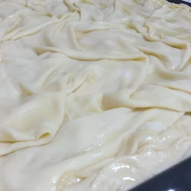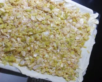 Απλώνουμε τα δύο φύλα κάτω ελαφρά λαδωμένα, την γέμιση και από πάνω τα άλλα δύο φύλλα.