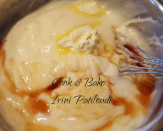 Βγάζουμε από την φωτιά και προσθέτουμε το βούτυρο και την βανίλια, υγρή εδώ, αλλιώς καψουλάκια 2.