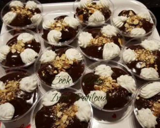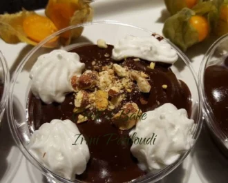 Και γεμίζουμε με την σοκολατένια κρέμα. Γαρνίρουμε με σαντιγί και λίγο αμύγδαλο.