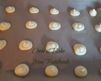 Τοποθετούμε όλη την ζύμη σε σακκούλα με στρόγγυλο άνοιγμα και κάνουμε μικρά μπαλάκια. Ψήνουμε στους 180 βαθμούς για 25-30 λεπτά. Αφήνουμε να κρυώσουν.