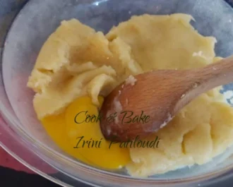 Μετά προσθέτουμε ένα- ένα τα αυγά.