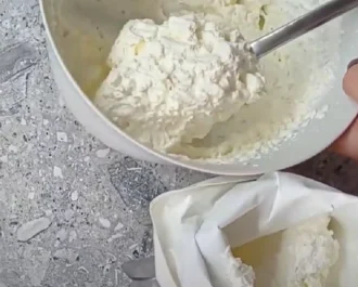 Χτυπάμε την σαντιγί μας να αφρατέψει με την άχνη και βάζουμε σε σακκούλα κορνέ .