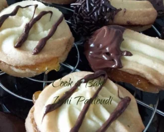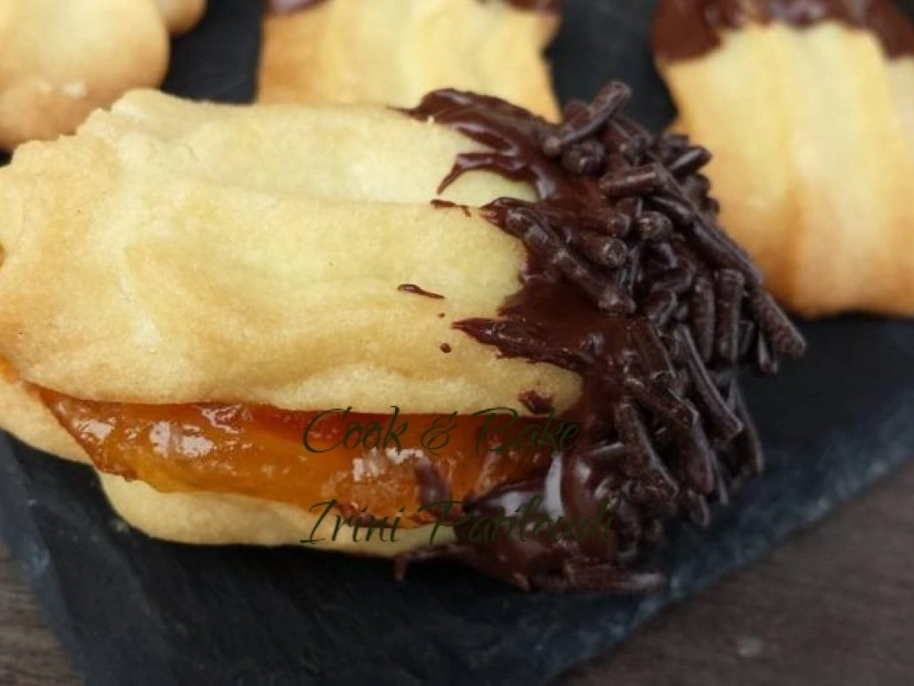 • Η ακόμα τα γεμίζουμε με μαρμελάδα και μετά στην σοκολάτα. Η δόση βγάζει 20 με 25 μπισκότα.