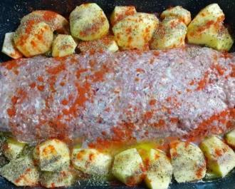 Μπορούμε επίσης να το ψήσιμο χωρίς μπείκον και με πατάτες στον φούρνο.