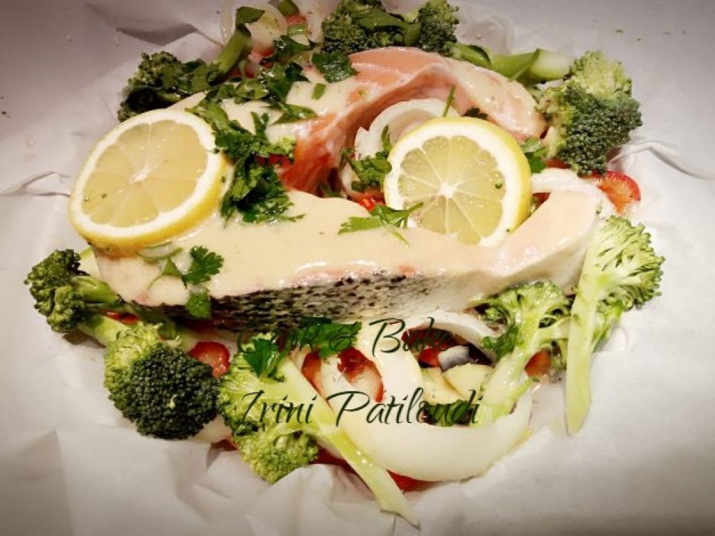 Σολoμός με λαχανικά σε λαδόχαρτο της φίλης Elena Theodosiadou.