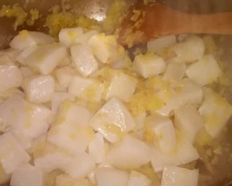 Βράζουμε για 15 λεπτά, προσθέτουμε τον πελτέ και το μισό ποτήρι νερό.