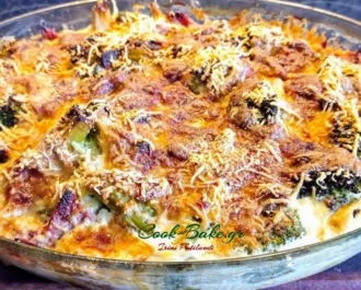 Υπέροχο και πολύ εύκολο σουφλέ με μπρόκολο, αλλαντικά, τυριά και μπεσαμέλ.