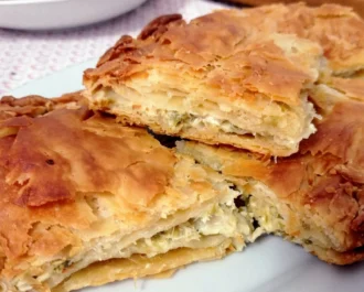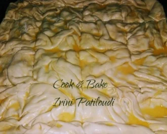 με δύο βουτυρωμένα φύλλα, την συνταγή για την ζύμη θα βρείτε εδώ…