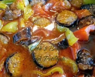 Ζουμερό φαγητό , πικάντικο με αρκετές πιπεριές και ντομάτες.