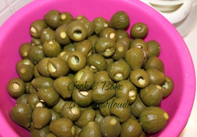 Με κοφτερό μαχαίρι, κόβουμε λίγο το κοτσάνι και αφαιρούμε το σκούρο σκληρό σημάδι που έχουν από την κάτω μεριά, αφαιρώντας και βγάζοντας τυχόν σποράκια που θα υπάρχουν. Αν θέλουμε τα τρυπάμε με οδοντογλυφίδα σε 1-2 μεριές .