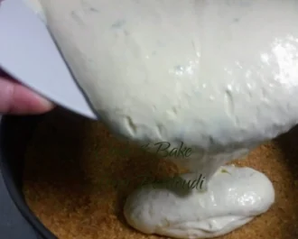 Χτυπάμε όλα να ενσωματωθούν καλά και αδειάζουμε την κρέμα μας πάνω από τα μπισκότα.