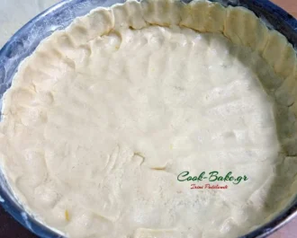 Το υπόλοιπο ζυμάρι το πατάμε σε μια διαιρούμενη φόρμα 28 cm .