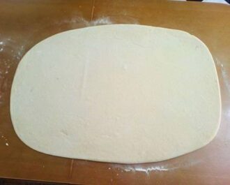 Ανοίγουμε σε λεπτό φύλλο 250γρ ζυμάρι .