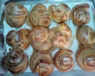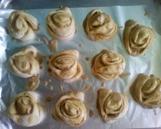 Αραδιάζουμε σε ταψί φούρνου και αφήνουμε να φουσκώσουν 1ώρα περίπου σε ζεστό μέρος.