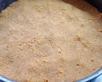 Λιώνουμε το βούτυρο ή μαργαρίνη και το ενώνουμε με τα μπισκότα μας, σε πυρέξ ή φόρμα 26 με 28 εκ.