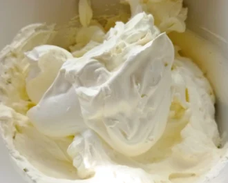 Χτυπάμε να σφίξει η κρέμα γάλακτος και προσθέτουμε το τυρί κρέμα και χτυπάμε ελαφρά να ενσωματωθεί με την σαντιγί μας.