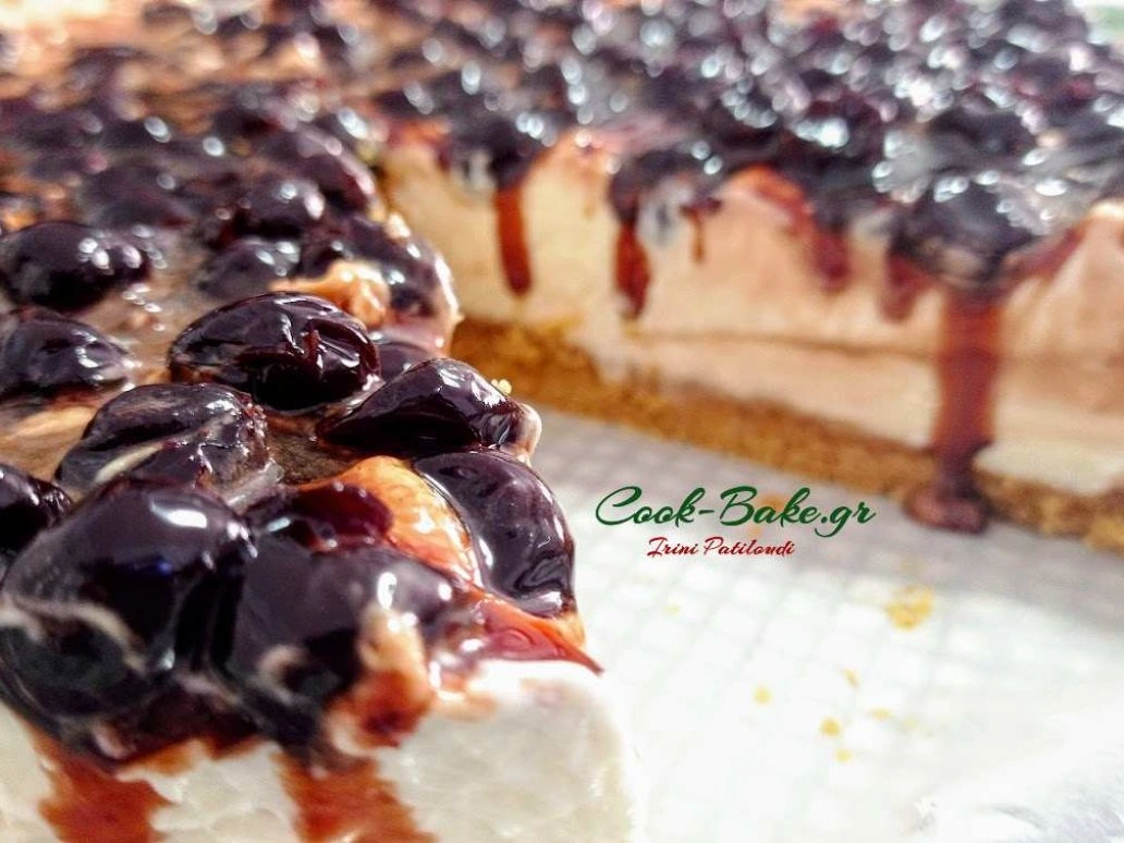Τσιζκέικ Cheesecake με γλυκό κουταλιού βύσσινο