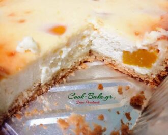 Τσιζ κέικ ψημένο με ροδάκινα.