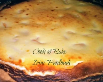 Ψήνουμε σε προθερμασμένο φούρνο στους 175′ για 50 με 60 λεπτά περίπου ανάλογα τον φούρνο μας. Μας ενδιαφέρει να ψηθεί καλά το γύρω γύρω, η ζύμη και τα πλαινά της κρέμας, ας είναι και λίγο ανοιχτόχρωμο στην μέση, κρυώνοντας θα σφίξει η κρέμα. Καλό είναι να κάνουμε το γλυκό από το βράδυ και το πρωί θα είναι έτοιμο όπως πρέπει.