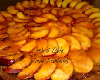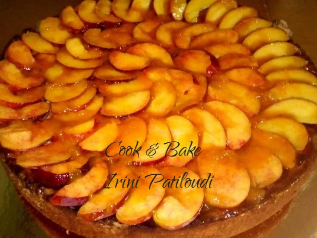 φρέσκα ροδάκινα ή κονσέρβας σε φέτες, όσα χρειάζονται για να καλύψουμε την επιφάνεια