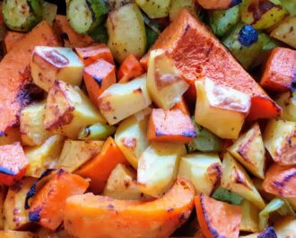 κολοκύθα, πατάτες, κρεμμύδι..ψημένα σε γάστρα.