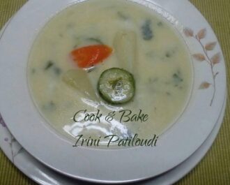 Έχουμε βγάλει όλα τα λαχανικά εκτός από 2 με 3 κομμάτια πατάτας για κάθε άτομο. Κατεβάζουμε από την φωτιά και ετοιμάζουμε το αυγολέμονο. Χτυπάμε καλά τα ασπράδια να γίνουν μαρέγκα. Προσθέτουμε και τους κρόκους. και προσθέτουμε και τον χυμό λεμονιού.