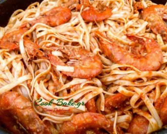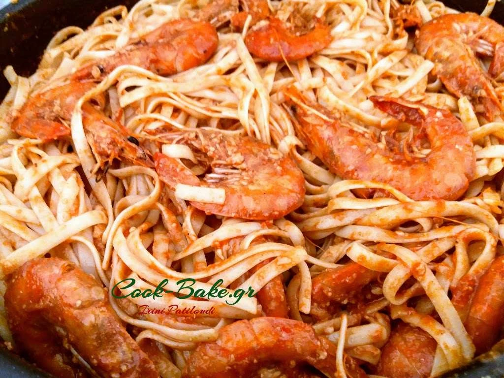 Γαρίδες ολόκληρες με σάλτσα ντομάτας στον φούρνο