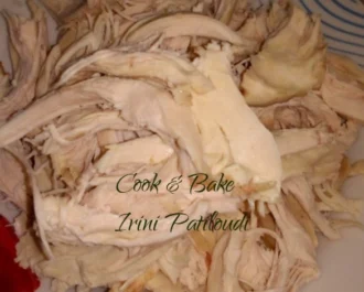 2 κομμάτια στήθος κοτόπουλο, βρασμένο και κομματιασμένο με τα χέρια