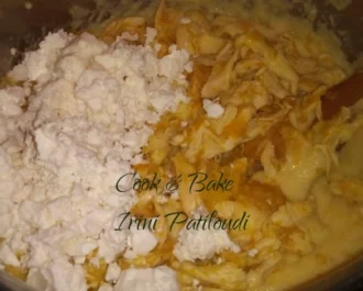 Φτιάχνουμε την κρέμα μας και την ενσωματώνουμε με το κοτόπουλο, τα αυγά και το τυρί φέτα.