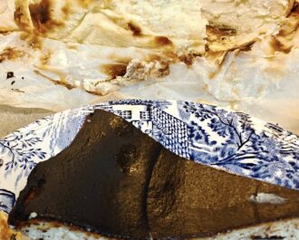 • Το “Καμένο” Στυλ: Η υψηλή θερμοκρασία ψησίματος έχει ως αποτέλεσμα την καραμελοποίηση της εξωτερικής επιφάνειας, δίνοντάς της μια σκούρα, σχεδόν καμένη όψη (burnt), η οποία προσφέρει μια ελαφριά πικράδα που εξισορροπεί τη γλυκύτητα. Το εσωτερικό παραμένει τόσο μαλακό που θυμίζει κρέμα.