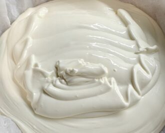 Αδειάζουμε την κρέμα μας στην φόρμα και χτυπάμε δύο τρείς φορές στον πάγκο να φύγει ότι αέρας υπάρχει από το μίγμα μας.