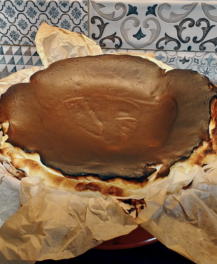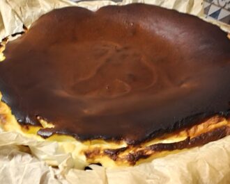 Ένα Cheesecake με πλούσια κρέμα  ισπανικής καταγωγής, βάσκικο  ή burnt cheececake που φτιάχνεται πολύ τώρα τελευταία παντού.