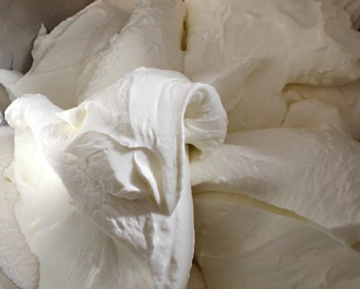 Χαμηλώνουμε ταχύτητα και προσθέτουμε την κρέμα γάλακτος και χτυπάμε να γίνει μία λεία κρέμα.