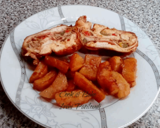 πιπεριές πολύχρωμες συνοδευμένο με πατάτες της φίλης Vaïa Pouliasi.